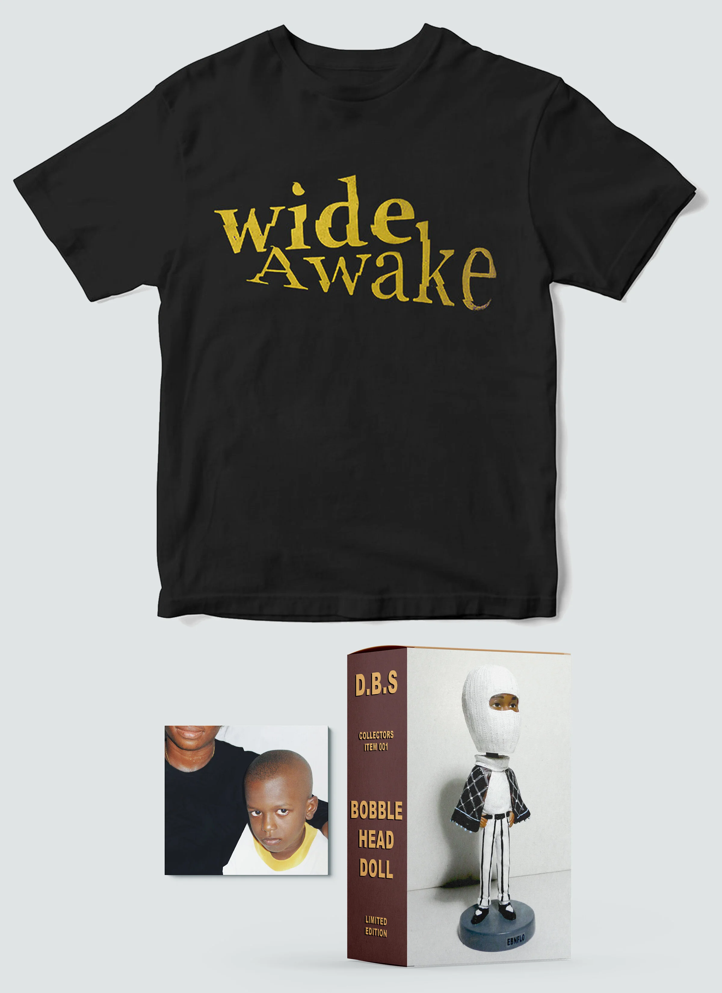 Merch Categories: All EP MUSIC All | EP | MUSIC | EBNFLO Bobble Head CA$90.00 Triad Bundle CA$115.00 DIOBU Limited Edition CD CA$20.00 Bobble Head + Limited Edition CD CA$100.00 Bobble Head + Raver Tee CA$105.00 Raver Tee + Limited Edition CD CA$40.00 WIDE AWAKE Raver Tee CA$25.00